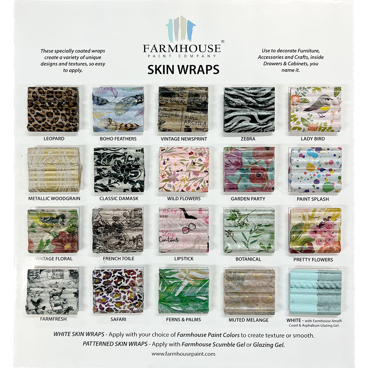 Farmhouse Skin Wraps are specially coated wraps that create a variety of unique designs and textures, so easy to apply. Use to decorate Furniture, Accessories and Crafts, inside Drawers & Cabinets, you name it.